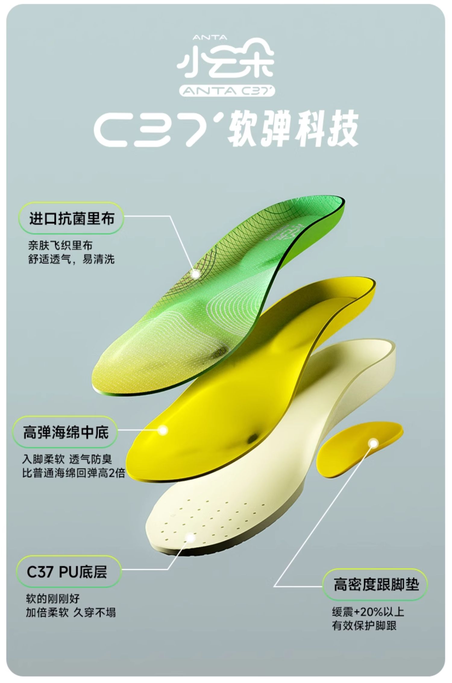 安踏小云朵运动鞋垫C37科技软底弹力减震减压透气吸汗跑步男女款